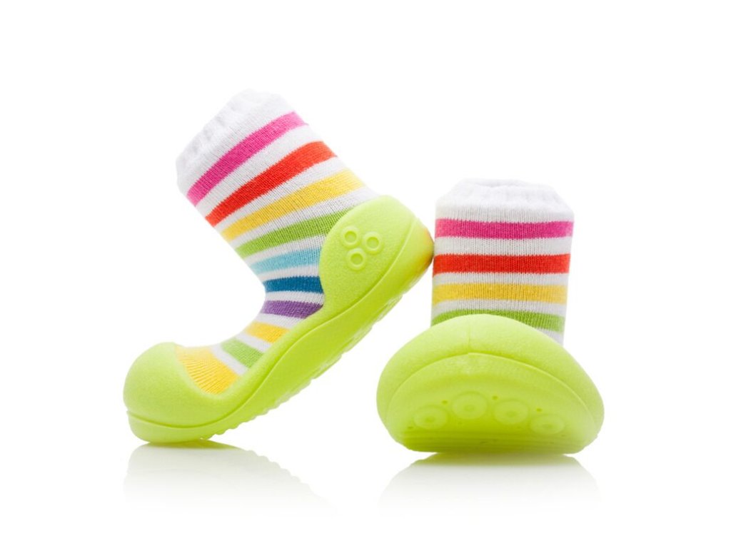 Tyto duhové botičky ocení všechny veselé děti, kterým se líbí zelená barva. Právě zelená barva je na těchto botičkách dominantní. Tyto, stejně jako i všechny ostatní Attipas boty, umožňují přirozený vývoj dětských chodidel.