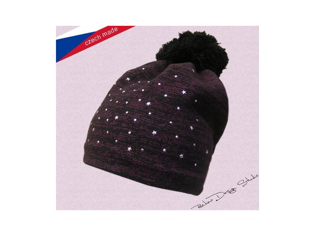 Dívčí zimní čepice ROCKINO z melírovaného polaru s aplikací stříbrných kamínků. Zdobená bambulí. Podšívka je z bavlněného úpletu.