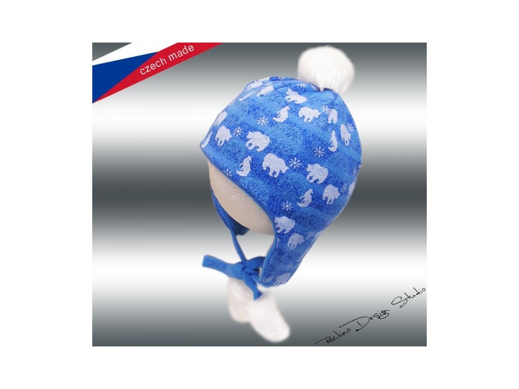 Dětská zimní čepice ROCKINO z jemné pleteniny podšité polarem. Čepice je opatřena šňůrkami ve všech velikostech, bambulí a dvěma stejnými bambulkami na koncích šňůrek. Potisk zimního motivu se zvířaty.