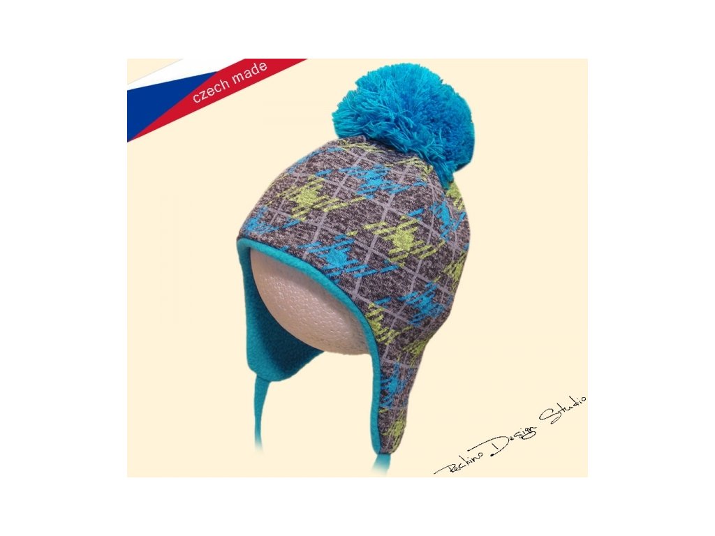 Dětská čepice ROCKINO šitá z osvědčeného materiálu Polar-fleece. Tato dvouvrstvá čepice je opatřená šňůrkami do velikosti 52 (velikosti 54 a 56 jsou již bez šňůrek). Originální potisk a podšívka z polaru do barvy bambule.