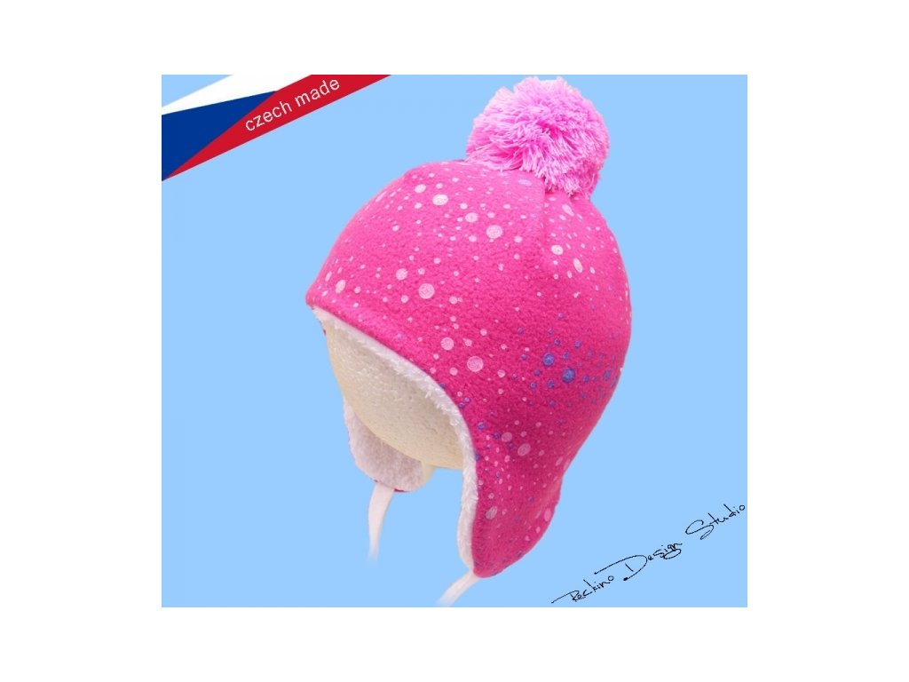 Dětská zimní čepice ROCKINO z materiálu Polar-fleece, podšitá příjemnou bílou kožešinkou Luna s potiskem. Opatřená šňůrkami ve všech velikostech a bambulí do barvy potisku. Dvouvrstvé zateplené provedení.